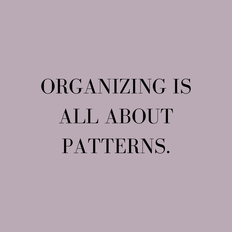 Organizing is all about patterns: patterns in the things we collect, yet-to-be-discovered patterns in how we should keep things, and recognizing patterns in our own behaviors. When faced with a closet full of too many clothes, a floor full of too much clutter, or a countertop full of too much paper, ask yourself what does this teach you about you? Go easy on yourself and resist the easy, self-deprecating answer. You may learn something
